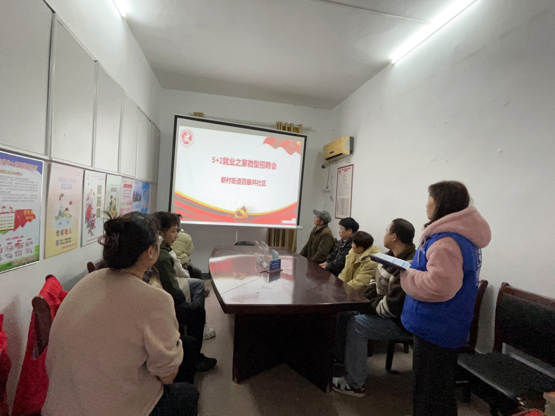 为解决辖区内居民的就业难题,打通就业服务“最后一公里”,近日,百眼井社区5+2就业之家举行了微型招聘会,为辖区就业困难人员、灵活就业者、大学未就业毕业生等未就业人员搭建起岗位对接、政策咨询、技能培训集一体的就业帮扶场地。