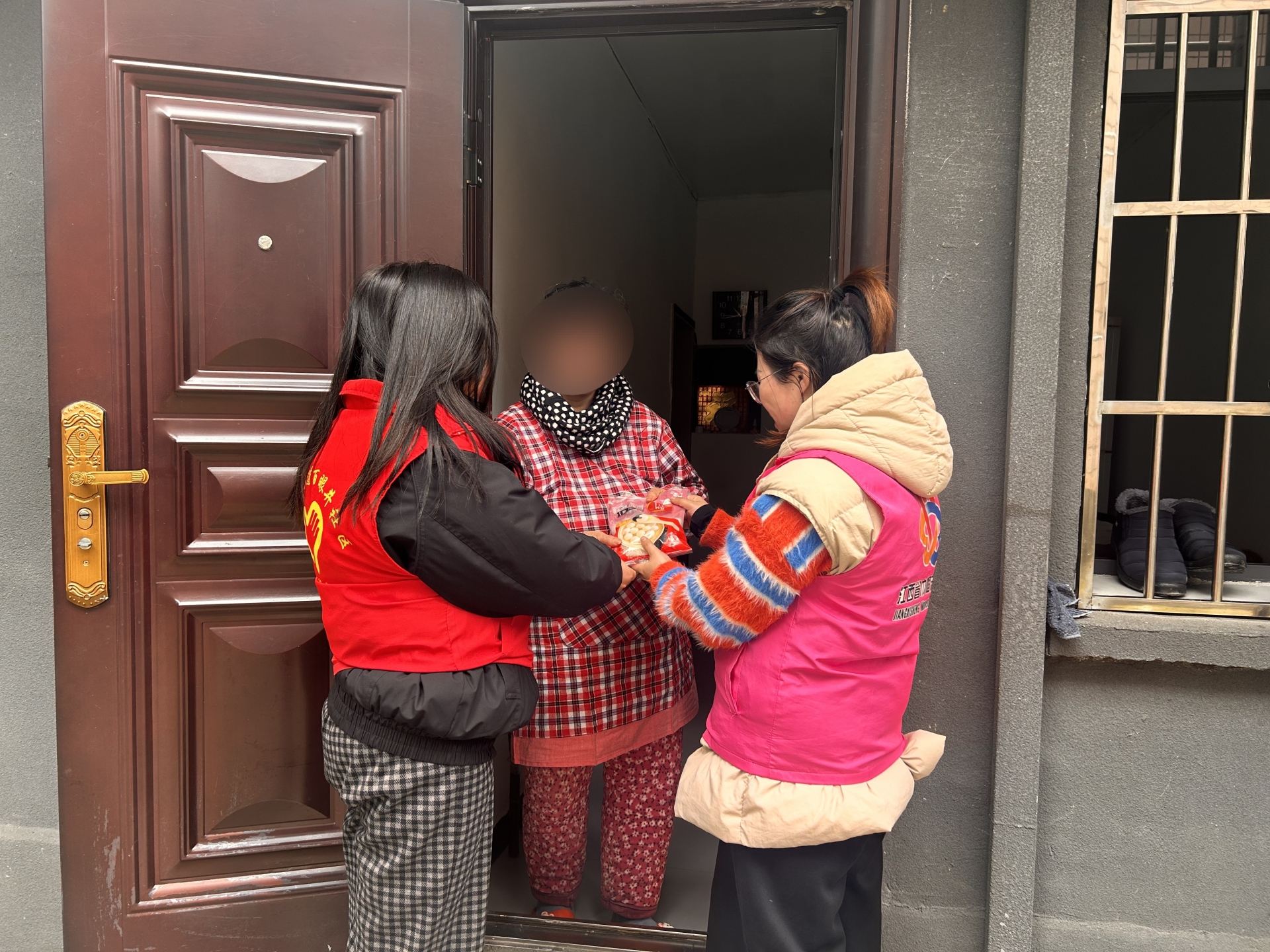 活动中,志愿者上户与老人促膝谈心,详细询问身体状况与生活需求,叮嘱老人注意防寒保暖、节日期间用电用火安全,将热腾腾的汤圆递到老人手中。