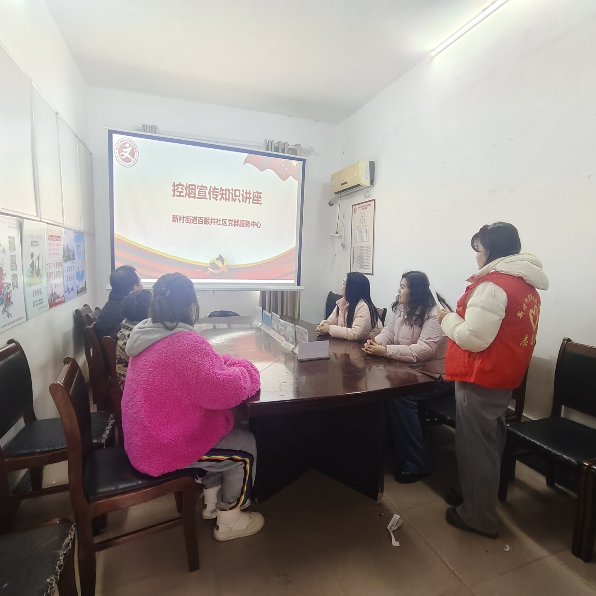 为进一步普及控烟健康知识,倡导文明健康生活方式,营造清洁、无烟、舒适的社区与营商环境,近日,新村街道百眼井社区党委联合社区新时代文明实践站、计生协、老科协、“百家亲”志愿服务队在社区党群服务中心开展控烟宣传知识讲座,本次活动面向辖区居民、沿街商户代表开展,以健康宣讲凝聚共治力量,以文明控烟助力营商环境提质升级。